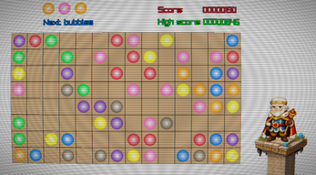 Match 5 or more (better more) in row to get points. More bubbles more points, destroy in row to get extra points.